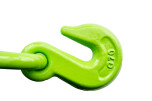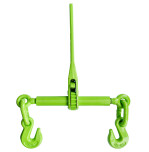 Presentamos nuestro Equipo de Sujeción de Cargas, compatible con cadenas de 3/8" a 1/2". De color verde y con componentes forjados en aleación de acero, este equipo tiene una carga de trabajo de 4000 kg y un coeficiente de seguridad de 3. La carga mínima de rotura es de 12000 kg, y es ideal para usar con la cadena Gº7.